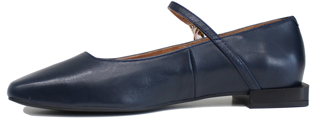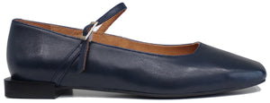 BALLERINA CINTURINO PUNTA QUADRATA PELLE BLU