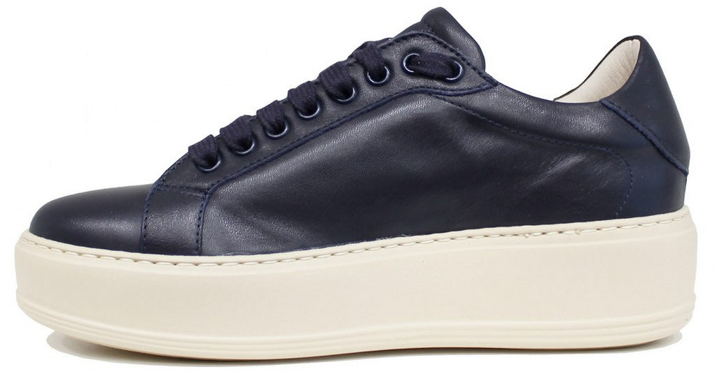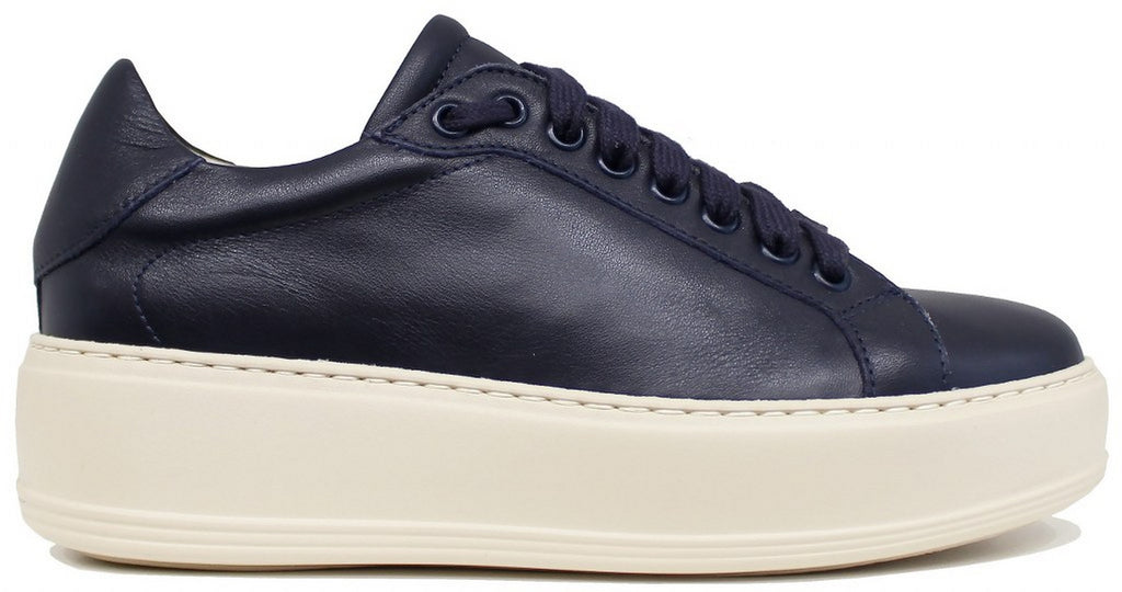 SNEAKER DONNA PELLE BLU SUOLA BEIGE