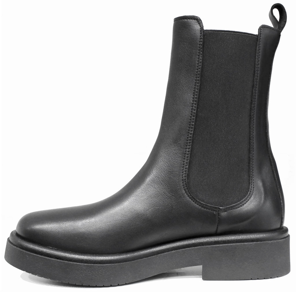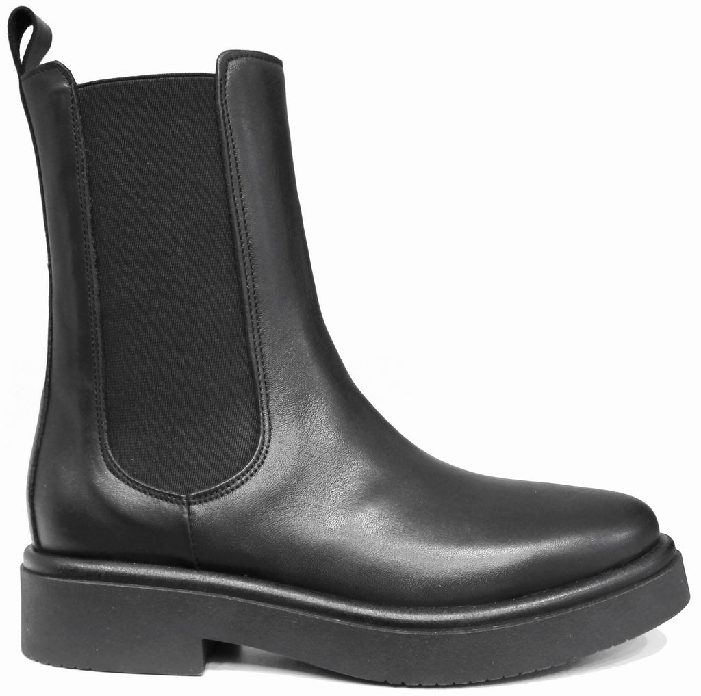 Stivaletto Chelsea donna artigianale, modello BEATLES NC 18, realizzato in vera pelle nera con una suola carrarmato dallo stile elegante ma allo stesso tempo sportivo.