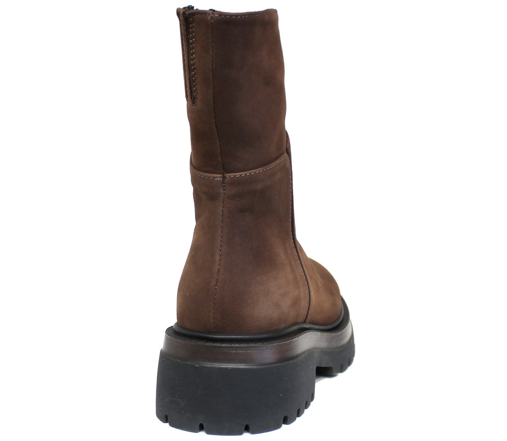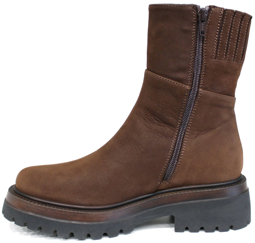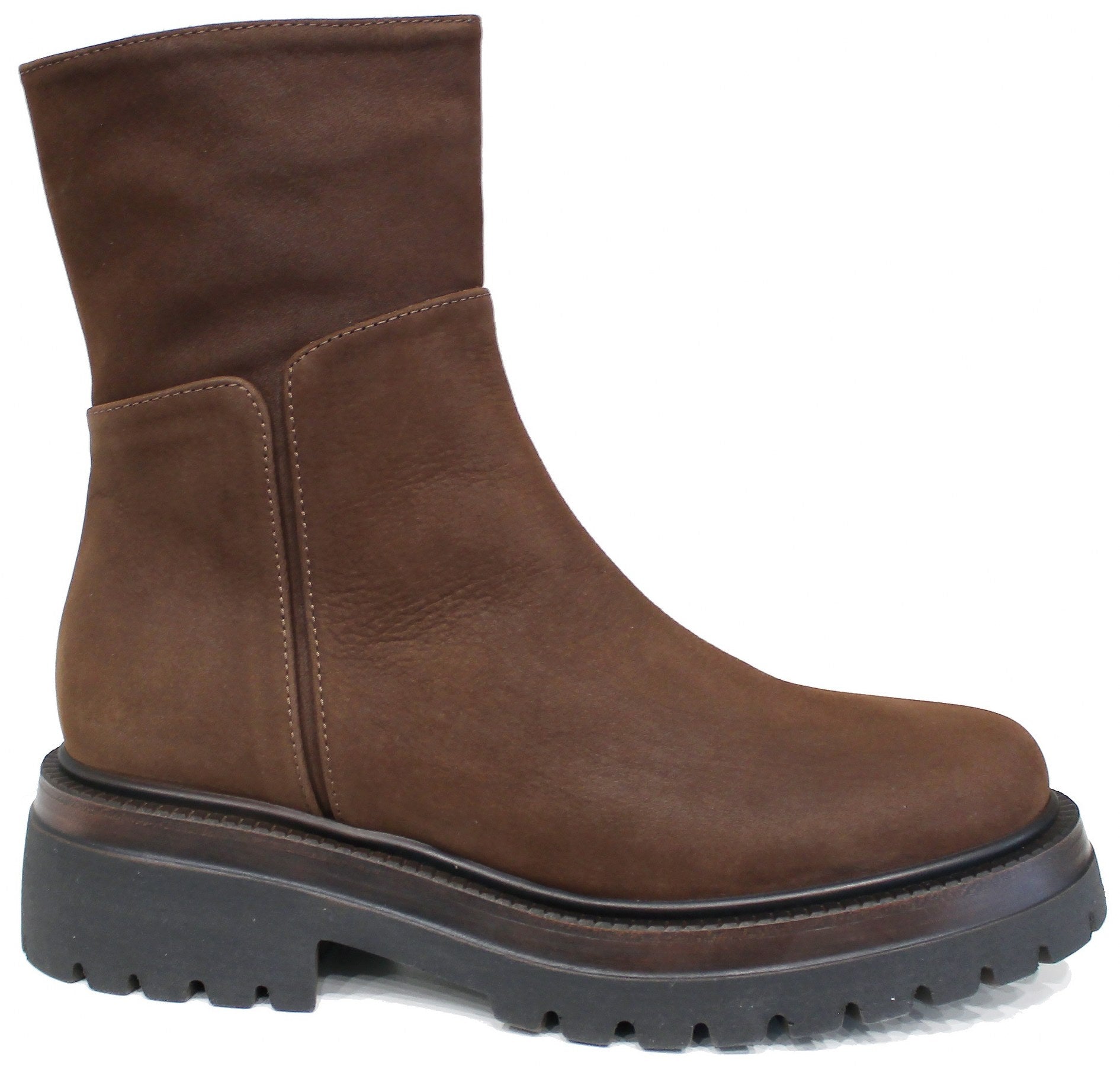 Anfibio senza lacci in vera pelle scamosciata marrone, tonalità sigaro, modello CROWN M21, con cerniera laterale interna e una suola alta e leggera, stile carrarmato, dal particolare stile casual elegante/sportivo che non può assolutamente mancare nella collezione di una donna!