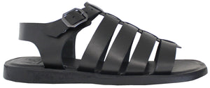 vista laterale scarpe sandali uomo eleganti ciabatte calzaturificio eder shoes articolo 4410 in vera pelle vacchetta nera con suola fondo gomma con sottopiede in vero cuoio e cinturino sul retro del sandalo altezza caviglia molto leggero 100% made in italy fatte a mano scarpe con negozio a civitanova marche calzature italiane artigianali scarpe online estive