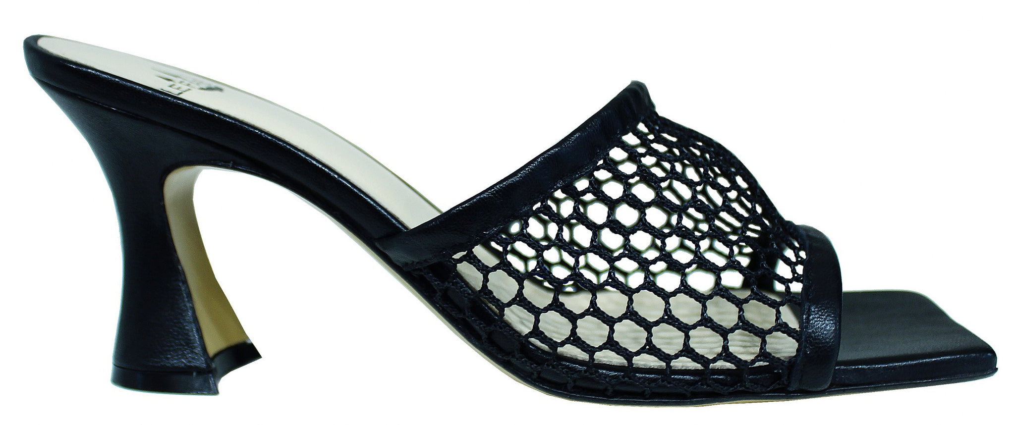 Stupendo sandalo, stile ciabatta, con fascia forata stile rete, tacco a rocchetto e punta dalla bellissima e particolare forma quadrata, ACS CALZATURE ITALIANE, in vera pelle nera, articolo 8277 LE FABIAN, dalla suola in cuoio; un articolo molto comodo ed elegante che non può assolutamente mancare nella collezione di una donna!