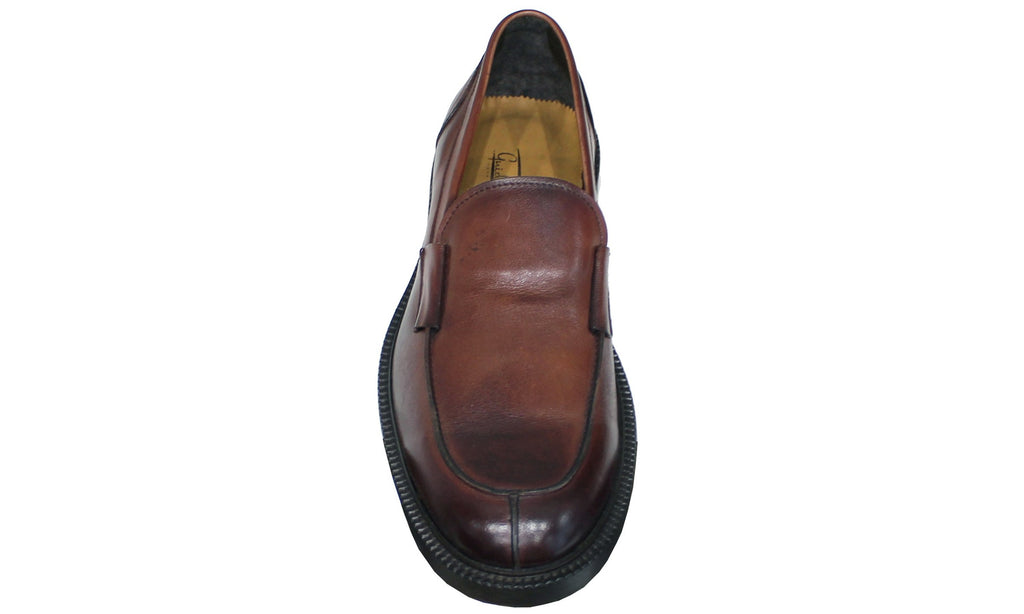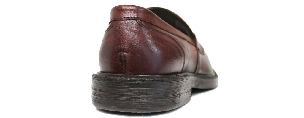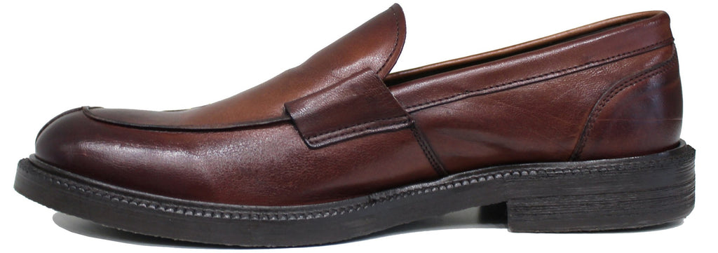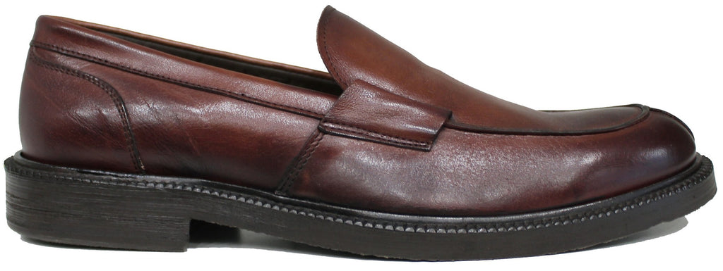 Bellissimo e classico mocassino uomo liscio artigianale, articolo EUROPA 6561, dal morbidissimo pellame marrone, tonalità sacher, e suola elegante cucita
