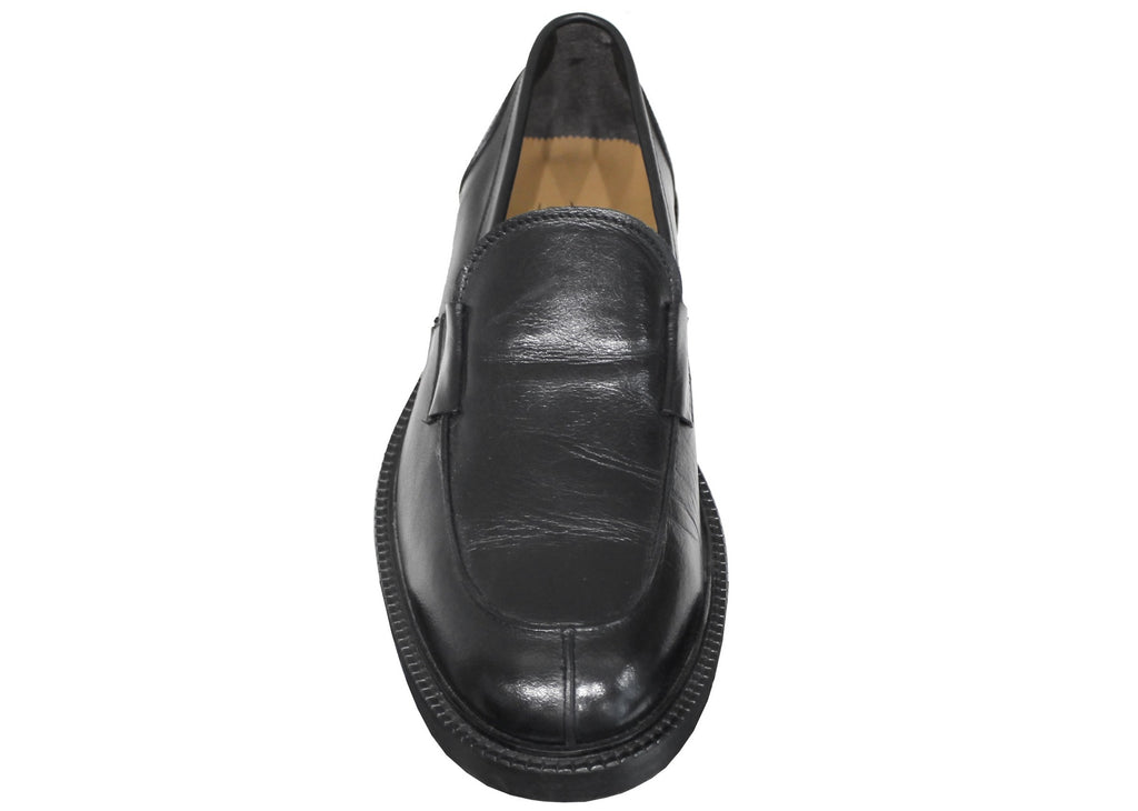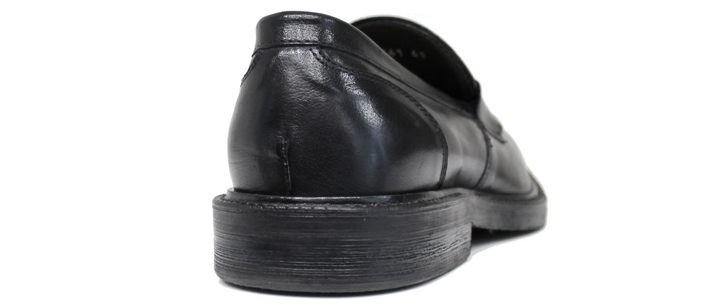 Bellissimo e classico mocassino uomo liscio artigianale, articolo EUROPA 6561, dal morbidissimo pellame nero e suola elegante cucita