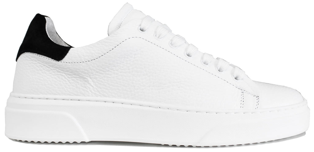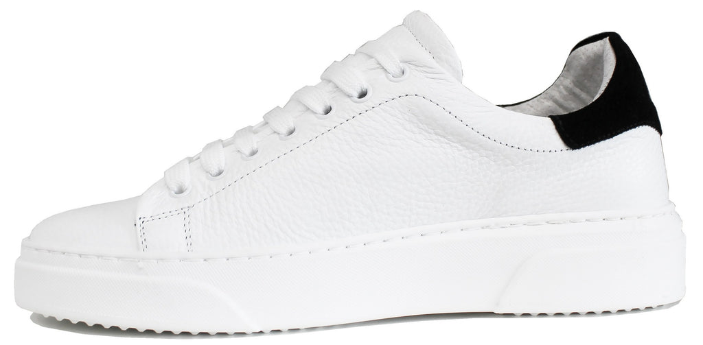 scarpe sneaker bassa uomo eleganti sportive articolo calzaturificio basic az52 in vera pelle bianca con tallone dietro in camoscio nero pellame molto morbido con suola alta rialzata molto leggera e comoda 100% made in italy scarpe con negozio a civitanova marche collezione moda soletta morbida estraibile per plantare calzature artigianali made in italy scarpe online spedizione veloce pagamento alla consegna