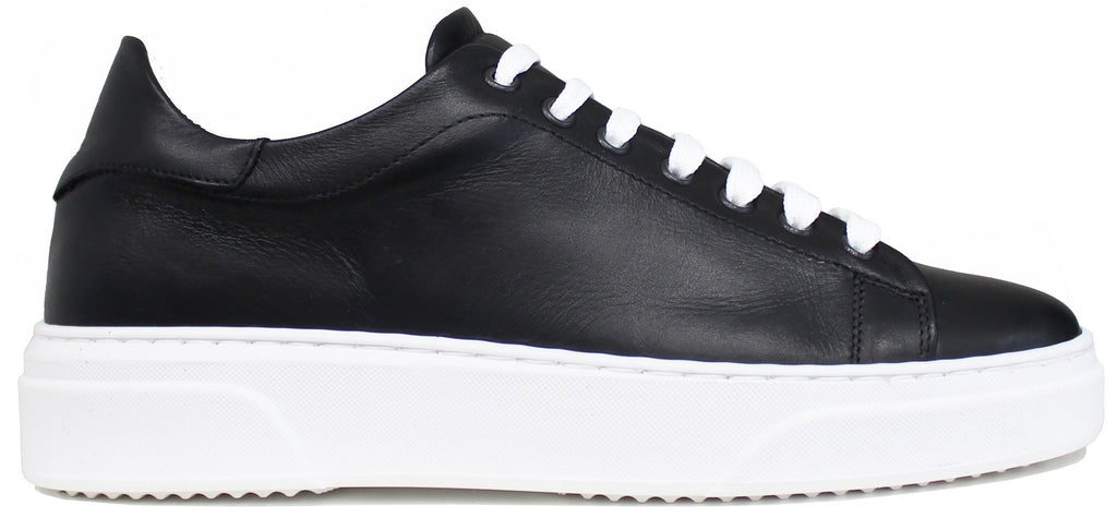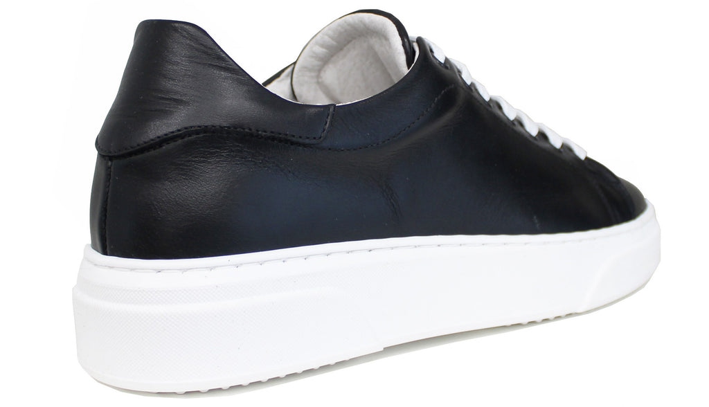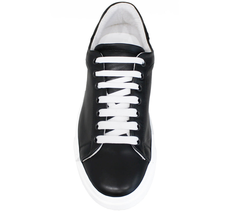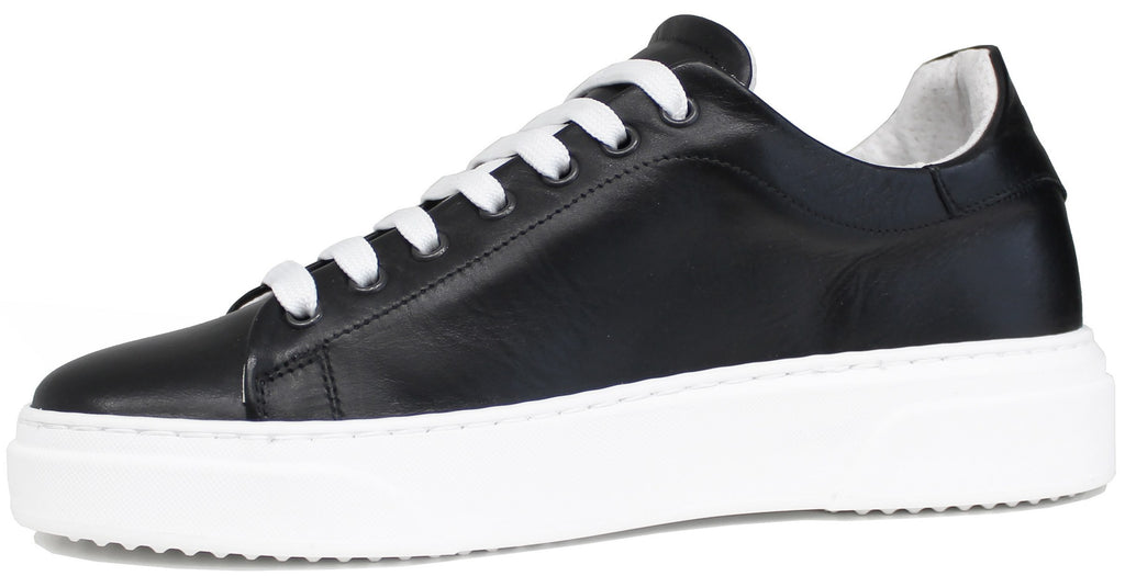 Sneaker uomo artigianale in vera pelle nera, modello AZ52, con laccio bianco a contrasto; scarpa dal particolare stile elegante/sportivo che non può assolutamente mancare nella collezione di un uomo!