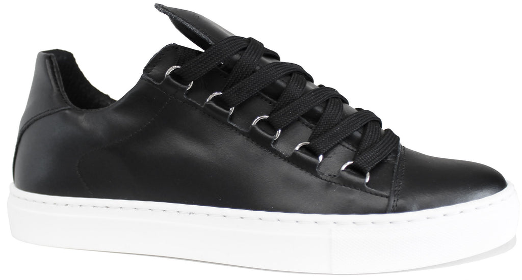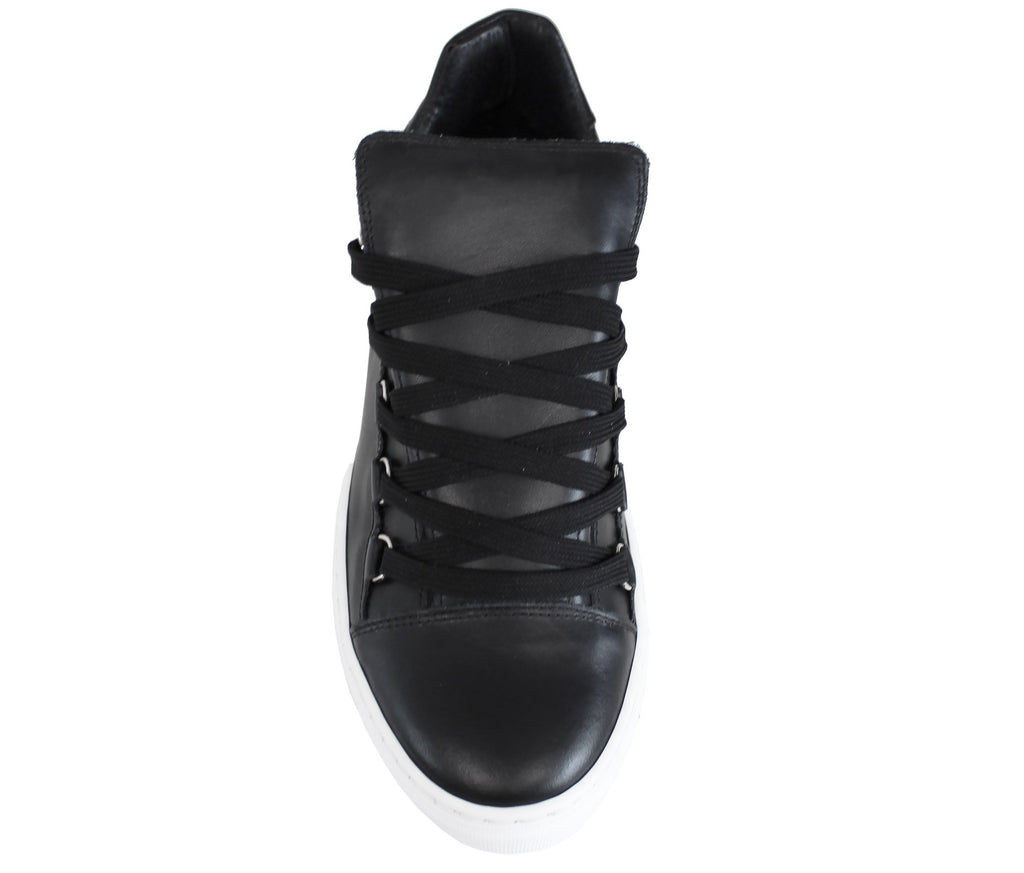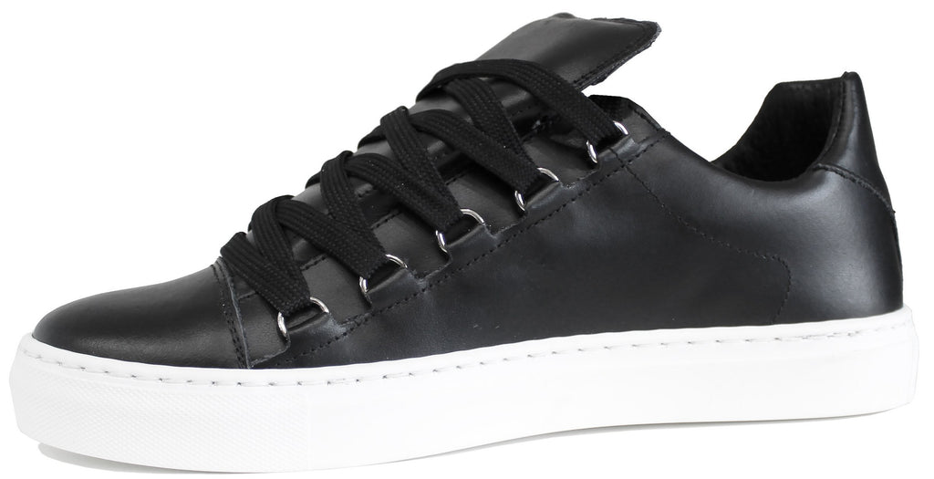 Sneaker uomo artigianale ACS CALZATURE ITALIANE, modello B3000, in vera pelle nera con un'iconica linguettona molto grande; un modello dal particolare stile elegante/sportivo che non può assolutamente mancare nella collezione di un uomo!