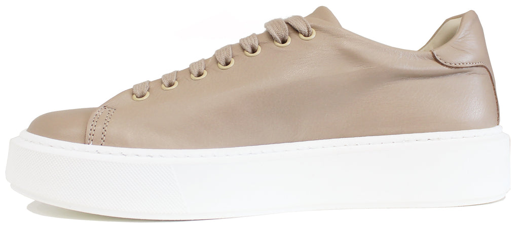 La sneaker uomo artigianale ACS CALZATURE ITALIANE oramai diventata un vero e proprio MUST, modello CROWN MARINO, in vera pelle beige marmo; un modello dal particolare stile elegante/sportivo che non può assolutamente mancare nella collezione di un uomo!
