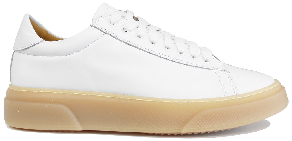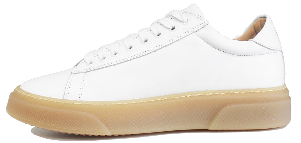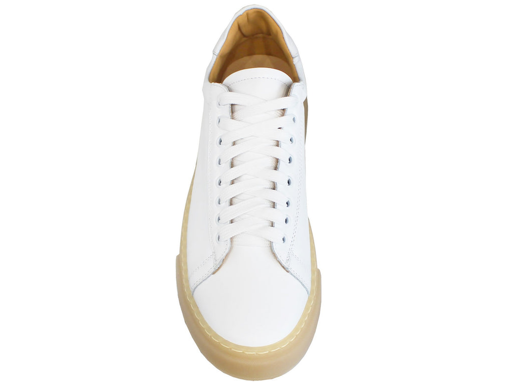 Sneaker uomo artigianale ACS CALZATURE ITALIANE, modello IPL 4190, in vera pelle bianca con una bellissima suola nocciola dal particolare stile elegante/sportivo che non può assolutamente mancare nella collezione di un uomo!