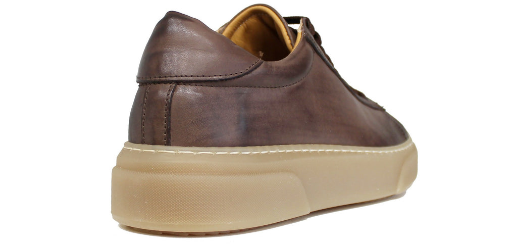 Sneaker uomo artigianale ACS CALZATURE ITALIANE, modello IPL 4190, in vera pelle marrone con una bellissima suola nocciola dal particolare stile elegante/sportivo che non può assolutamente mancare nella collezione di un uomo!