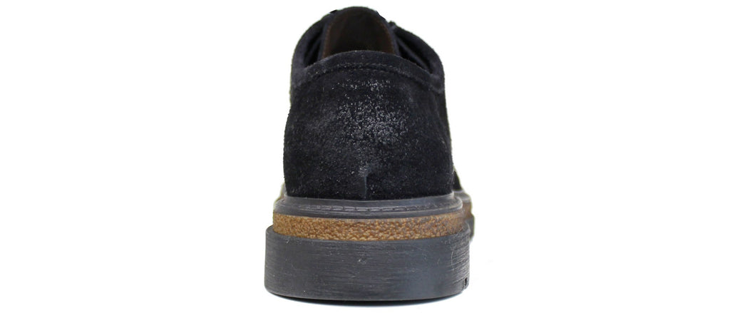 Scarpa artigianale uomo, modello 6522, ispirata alla classica forma "INGEGNERE" (di gran tendenza), realizzata in vera pelle scamosciata ingrassata nera.