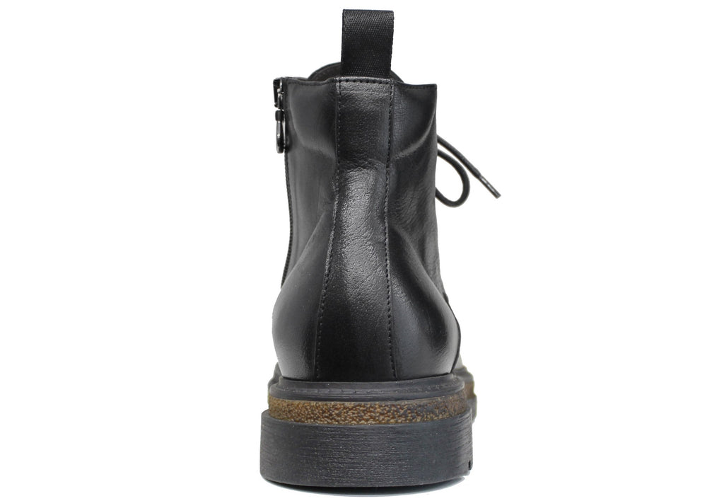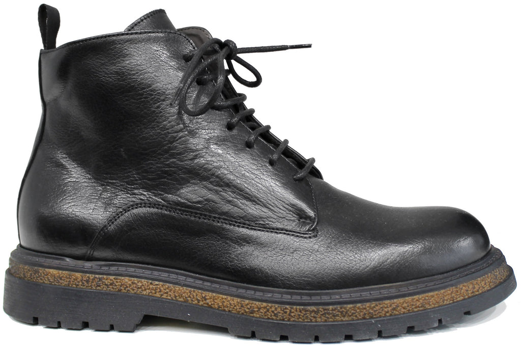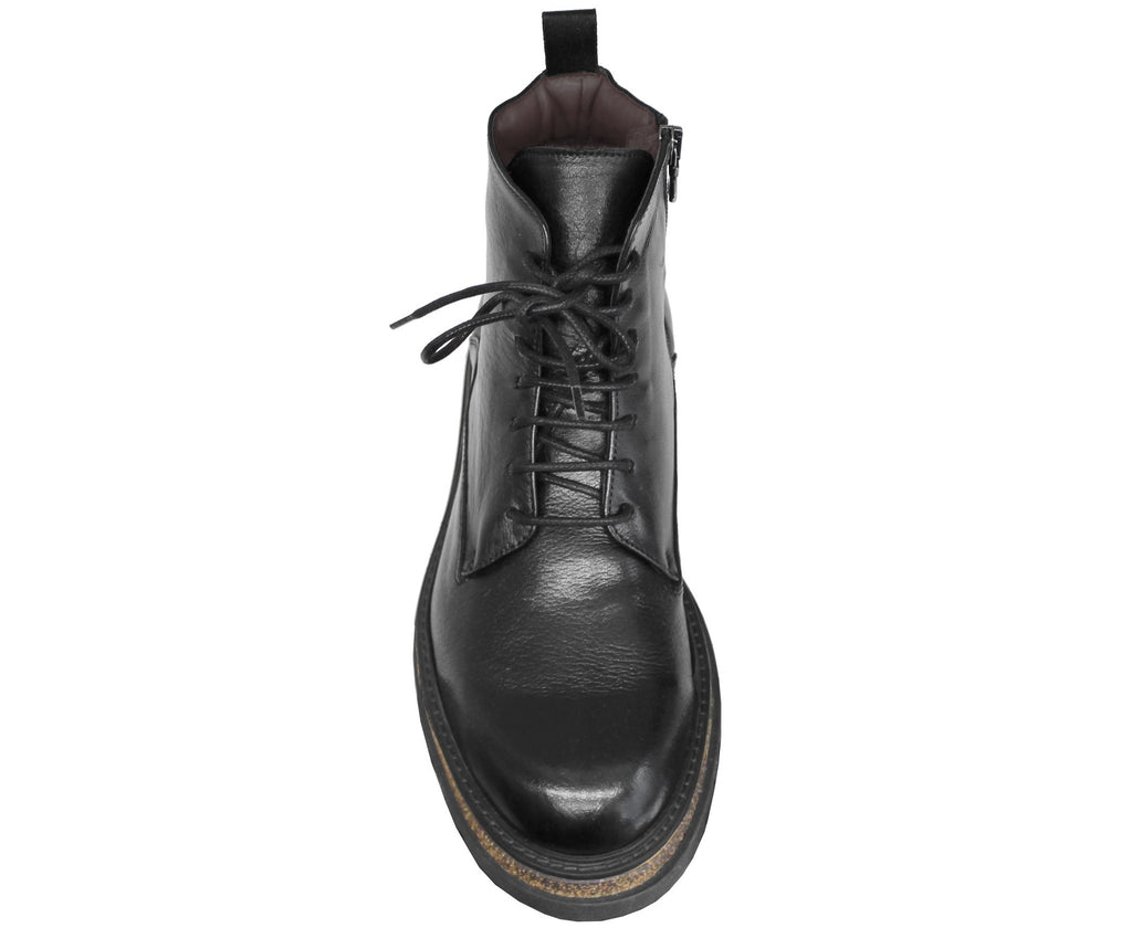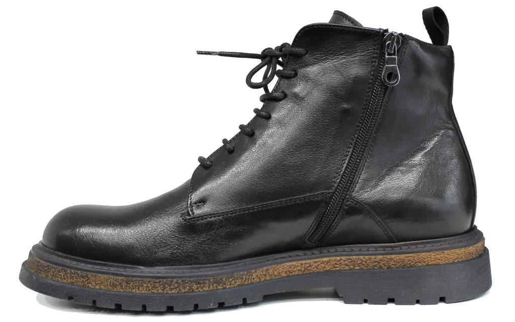 Stivaletto artigianale uomo, modello 1241, realizzato in vera pelle nera che, oltre a essere stringato, presenta una comoda cerniera laterale (nascosta nella parte interna) che ne facilità la calzata