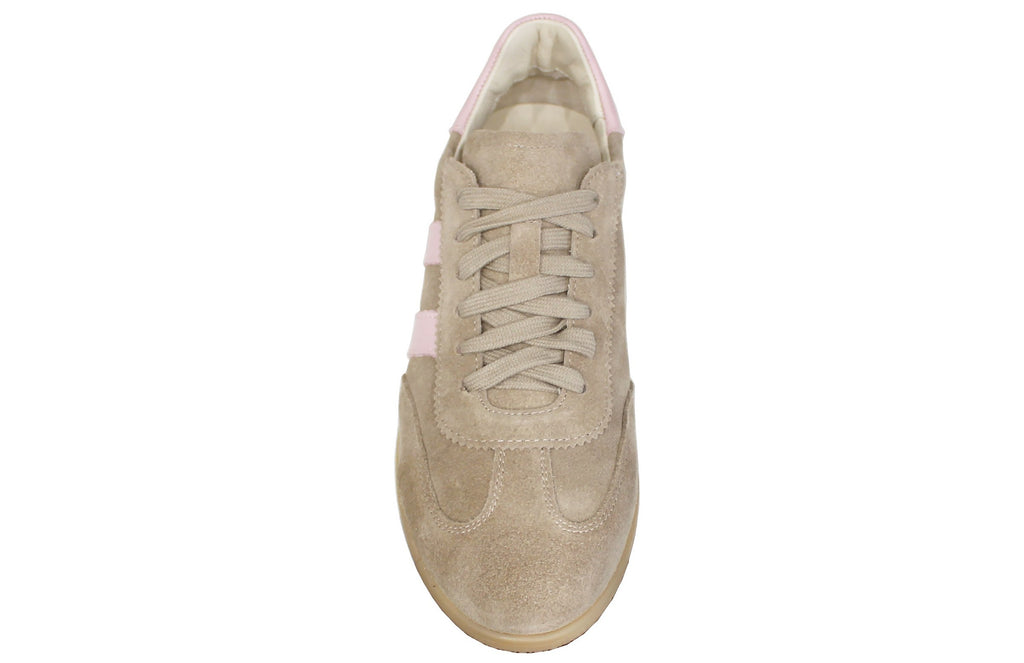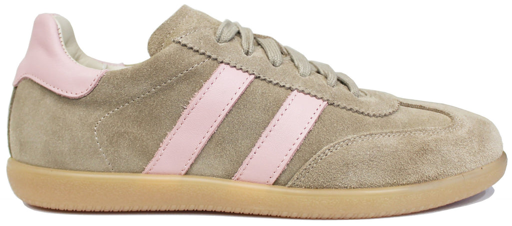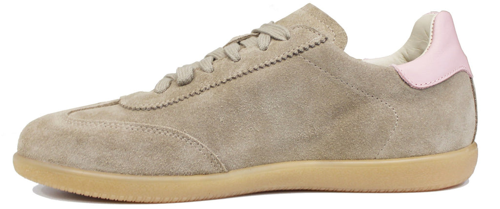 SNEAKER DONNA CAMOSCIO TAUPE PELLE ROSA