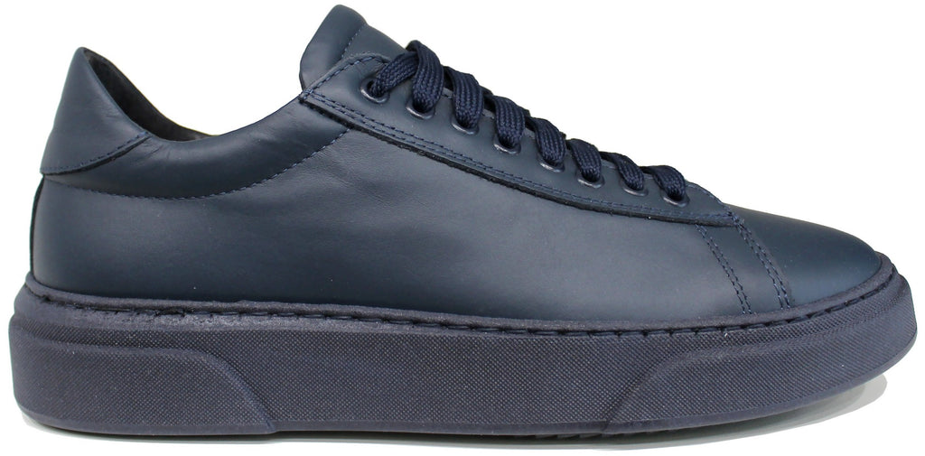 SNEAKER UOMO PELLE BLU SUOLA IN TINTA